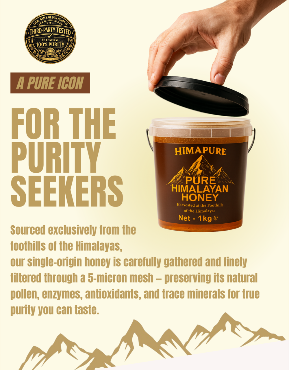 "Single-origin honey • Rich Mineral Profile • Purity You Can Taste • Harvested at the Foothills at the Himalayas •